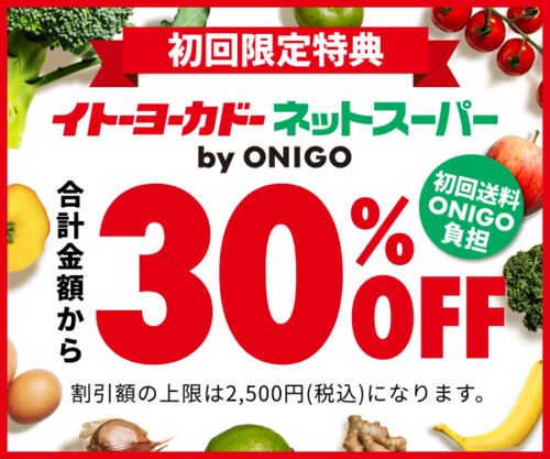 忙しい毎日でも「新鮮な食材をすぐに届けてほしい!」そんな願いを叶えてくれるのが、【イトーヨーカドーネットスーパー by ONIGO】です。 わざわざスーパーに行かなくても、スマホやPCから簡単に注文できて、最短で当日にお届け。 重たい水やお米、まとめ買…